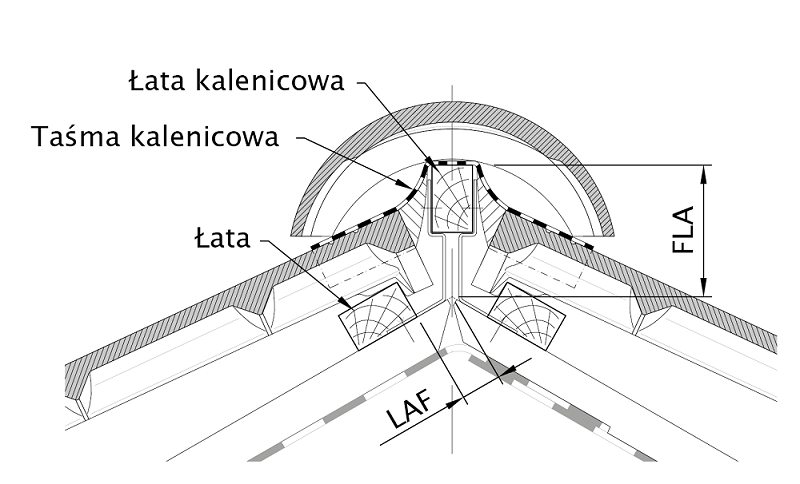Rysunek techniczny - przekrój kalenicy (LAF i FLA)